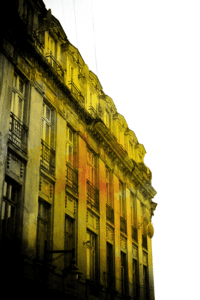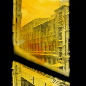 By Spring, the foundations were excavated, sewer pipes flowed like rivers through clay, pink and black cables unrolled from enormous wooden spools, each taller than a person, and steel skeletons rose up, obscuring one strip of Bucharest after another, choking off the rustling vegetation and blocking up the entryways, gargoyles, cupolas, and stacked terraces of the city. The disorderly and unsteady forms of wood and cast iron, the scaffolds that the workers climbed, the cement mixers that emitted waves of smoke, the piles of new steel electrical poles that replaced the rusted crucifixes, all seemed like the visible parts of a conspiracy, intended to make me say goodbye to Bucharest, and to myself, my fifteen years spent sitting on the bedstead with my feet on the radiator, pulling the curtain back and watching the vast skies of the city. A wall goes up, a section of my mind closes, and from now on, the wall keeps me from accessing all I projected into every cube and square, the black green and the yellow green and the moon thin as a fingernail reflecting in every window. When I was seven or eight, my parents made me nap every afternoon. The dresser was across from the bed, and I would watch the light shine on its surface, minute after minute, a child with dark eyes sweating under his sheet and unable to sleep for a second. When the sun reflected in the veneer blinded me, made me see purple spots, I turned my face to the wall, to follow every little rust colored blossom and leaf in the upholstery on the side of the bedstead. In this floral labyrinth, I discovered small symmetries, unexpected patterns, animal heads and men’s silhouettes, with which I created stories I meant to continue in my dreams. But sleep never came, there was too much light, and one October, precisely this white light convinced me to play with fire: I listened first for any sounds from my parents’ room, and then I quietly got out of bed and tip-toed to the window. The image of the city was dusty and far away. The street curved off toward the left, so I could see the apartments on our side, toward Lezeanu and Obor. In the distance, I could see the old fire watchtower, and behind it, a city heating unit with its paraboloid boxes ejecting petrified smoke. The trees looked straight, or like Gothic arches, but the closest ones betrayed their provenance: the branches, filled with trembling, sprouting leaves, were not straight but twisted like an unfastened braid. I leaned my forehead against the window and, dizzy with insomnia, waited for five o’clock, but time seemed to have stopped flowing, and the terrifying image of my father bursting through the door, his dark hair knotted in a stocking on top of his head like a fez, and falling in a thick brown line like a crow’s tail, kept coming to my mind. Once during these minutes stolen from obligatory sleep, I witnessed the most beautiful scene in the world. It was after a summer storm, with lightning branching through the suddenly dark sky, so dark that I would not have said if it was darker in my room or outside, with gusts of rain, rapid parallel streams surrounded by a mist of fine drops lazily bouncing in every direction. When the rain stopped, between the black sky and the wet, grey city, daylight suddenly appeared. It was as though two infinitely gentle hands were protecting the yellow, fresh, transparent light that lay across these surfaces, coloring them saffron and orange, and turning the air gold, making it shine like a prism. Slowly the clouds broke apart, and other stripes of the same rarified gold fell obliquely, crossing the initial light, making it even more intense, clearer and cooler. Spread over the hills, with the Mitropol towers the color of mercury, with all the windows burning like a salt flame, crowned with a rainbow, Bucharest painted itself onto my triple window, the sash of which my collar bone just touched.