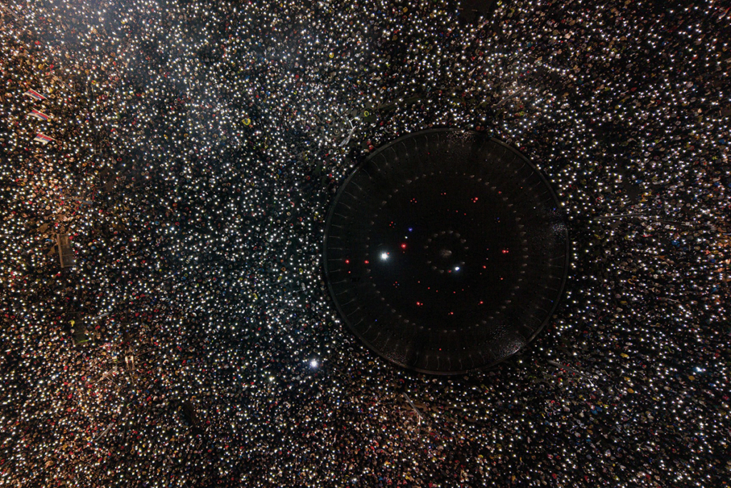 Drone image of a protest at Slavija Square in Belgrade. December 22, 2024. Photo courtesy of the Public Assemblies Archive