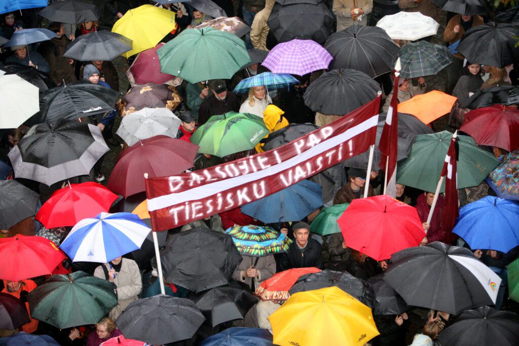 Latvia’s “Umbrella Revolution” in 2007 was supported by Diena and led to the prime minister’s resignation. Photo: LETA/Scanpix