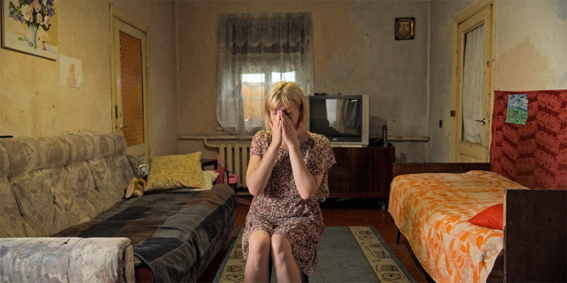 A mother cries while remembering the six months when she did not see her son. Image courtesy of Tetiana Khodakivska and Denys Melnyk.
